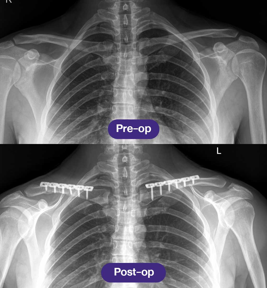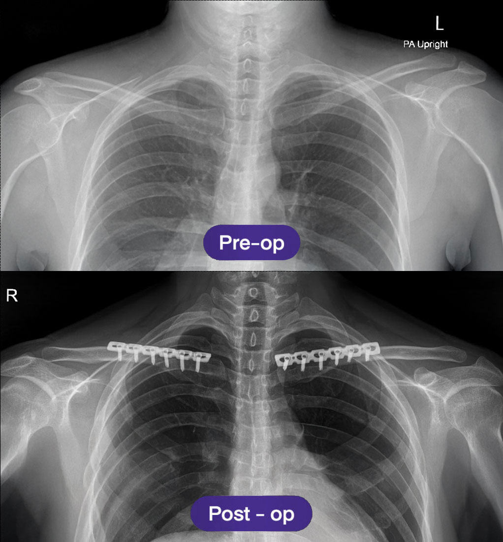 📌 การเอกซเรย์กระดูกไหปลาร้าหลังการผ่าตัด จะดำเนินการเป็นประจำในการติดตามผลครั้งแรก เพื่อยืนยันการจัดแนวของกระดูกที่เหมาะสมและความคืบหน้าของการสมานตัว